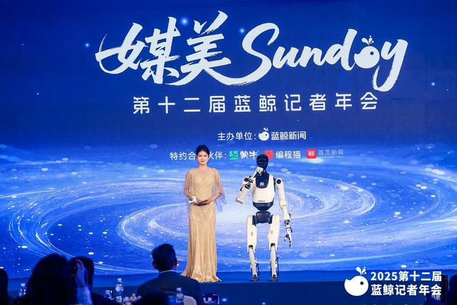 宇树迎宾、天工机器人主持,媒体圈老友记,第十二届蓝鲸记者年会落地北京
