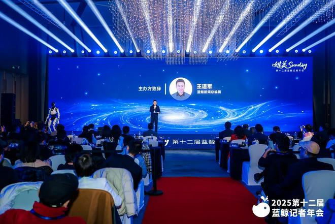 茶壶财经总编辑王道军为本次年会致开幕词,他表示十二年来,从纸媒黄金时代到移动互联网浪潮,从传统报道到全媒体融合,从单向传播到多元交互,蓝鲸陪伴媒体人共同经历了传媒行业的深刻变革。"今年年会的主题‘媒美Sunday’,不仅谐音‘美好周日’,更寄托着我们对媒体行业美好未来的期许,让我们共同致敬过去的十二年,也致敬我们共同奔赴的下一个十二年。"