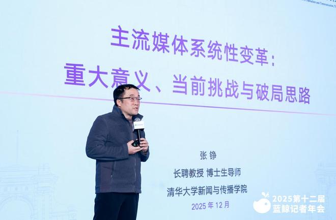 清华大学新闻与传播学院副院长张铮教授以"主流媒体系统性变革"为主题进行分享。他认为当前媒介生态格局发生深刻变化、媒体内部融合发展进入攻坚阶段,主流媒体系统性变革面临用户偏好视频化、市场存量竞争加剧、舆论环境嘈杂化、技术的双刃剑效应、平台依赖等五大挑战。在张铮看来,主流媒体系统性变革应当以主力军占领主战场为首要指导原则,以系统性思维为核心理论支点。