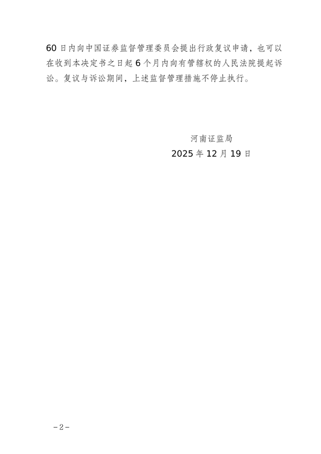 针对以上问题,河南证监局决定对河南金祥股权投资基金管理有限公司采取责令改正的行政监管措施,并记入证券期货市场诚信档案。