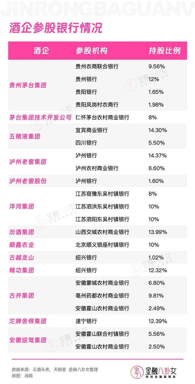 目前,已经有十多家酒企参股了二十多家银行,看来白酒巨头们对银行这种稳健的资产非常偏爱。