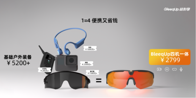 除通用型AR设备外,面向垂直场景的深度定制产品成为新亮点。BleeqUp发布的Ranger(超影擎)四合一AI运动拍摄眼镜,集成AI高清运动相机、开放式蓝牙耳机、实时对讲及专业运动护目镜功能,搭载AI智能剪辑,一键生成运动短片。![]()