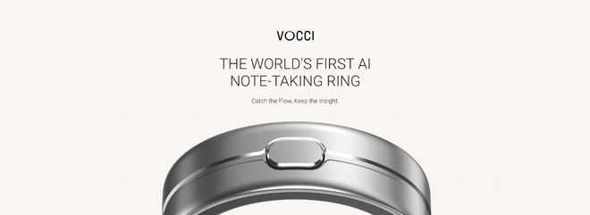 这是Vocci推出的AI智能戒指,主打语音监听与实时转写,支持超过100种语言,轻轻一触即可启动记录。
