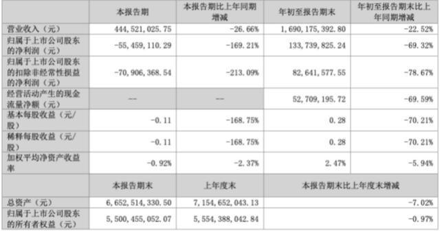 其中第三季度单季表现尤为低迷:营收4.45亿元,同比下降26.66%;归母净利润亏损5545.91万元,同比下滑169.21%;扣非净利润亏损7090.64万元,降幅高达213.09%,出现近年来罕见的单季度亏损。