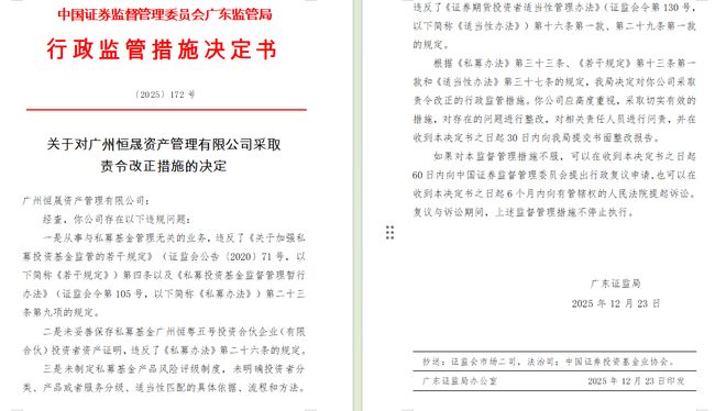 对此,广东证监局决定对广州恒晟资产管理有限公司采取责令改正的行政监管措施。