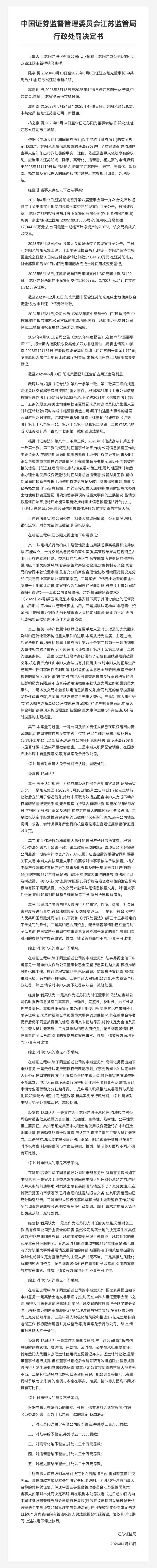 茶壶财经1月15日讯,近日,江苏证监局发布行政处罚决定书,剑指江苏阳光股份有限公司及其相关责任人。决定书显示,2023年4月27日,江苏阳光召开第八届董事会第十九次会议,通过了《关... 茶壶财经1月15日讯,近日,江苏证监局发布行政处罚决定书,剑指江苏阳光股份有限公司及其相关责任人。