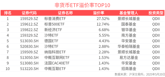港股创新药ETF领涨市场,标普消费ETF溢价显著值得关注